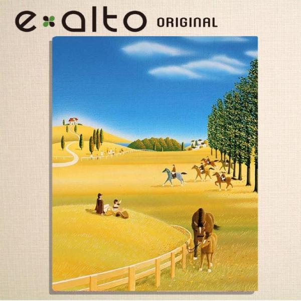 壁掛けアート アートパネル 風景画 イラストレーター 親子の馬と秋の乗馬レースのイラスト セール特価 高橋宣孝